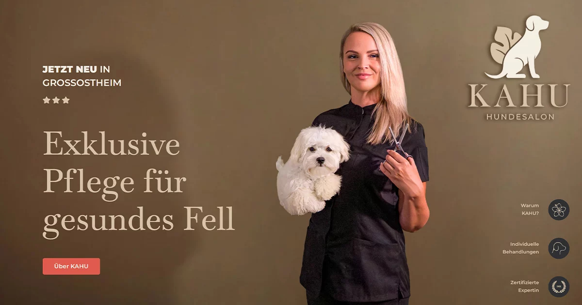 Artgerechte, stressfreie und hochwertige Fellpflege aller Rassehunde und Mischlinge. Im KAHU Hundesalon in Großostheim bei Aschaffenburg erhält dein Hund individuelle Pflege mit Herz, IHK-zertifiziertem Fachwissen und hochwertigen Produkten – für entspanntes Wohlbefinden und ein gesundes, schönes Fell.